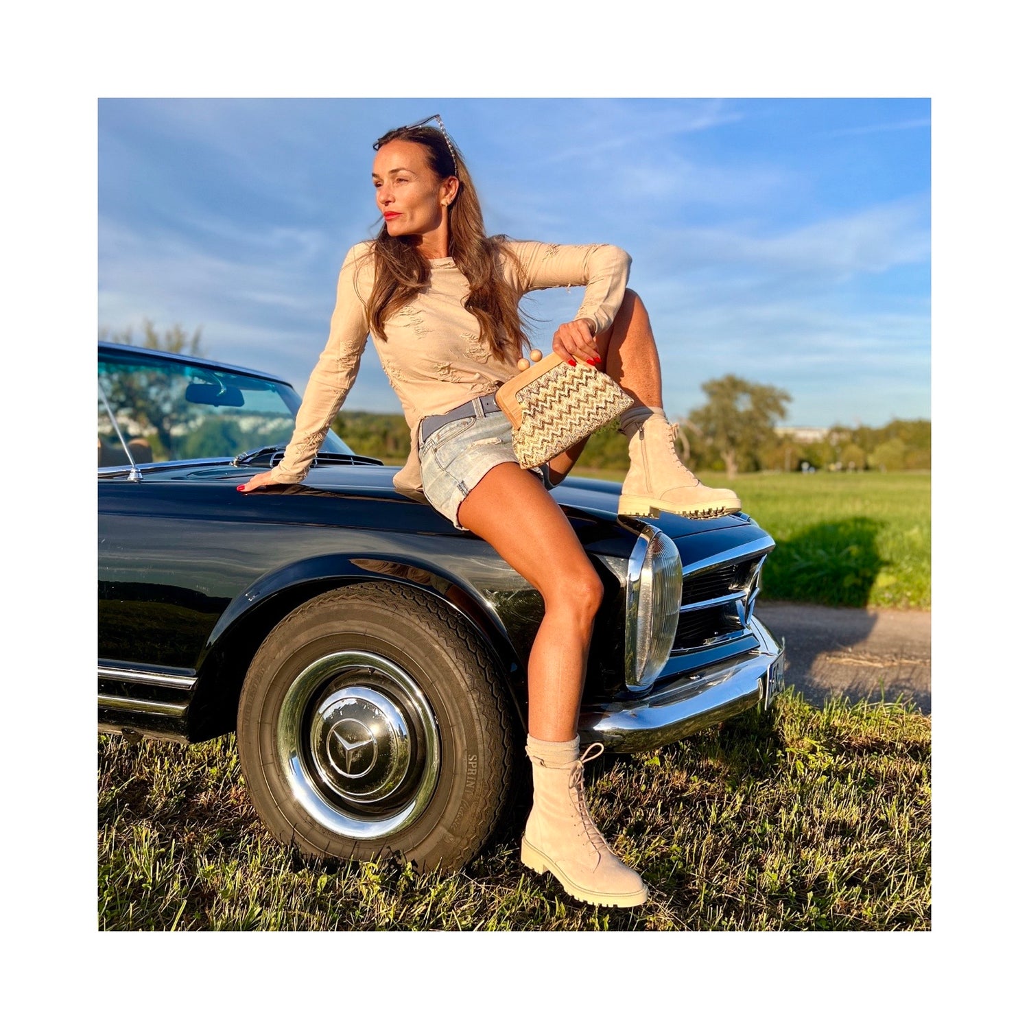 Auch in den wärmeren Monaten sind Outfits mit Stiefeletten ein echter Blickfang. Versuche es doch mal mit beigen oder weißen Boots und kombiniere sie für einen Casual Look mit High-Waist-Shorts und einem lockeren Leinenhemd. Eine Korbtasche, filigraner Schmuck und vielleicht sogar ein sommerlicher Hut machen das Outfit rund.