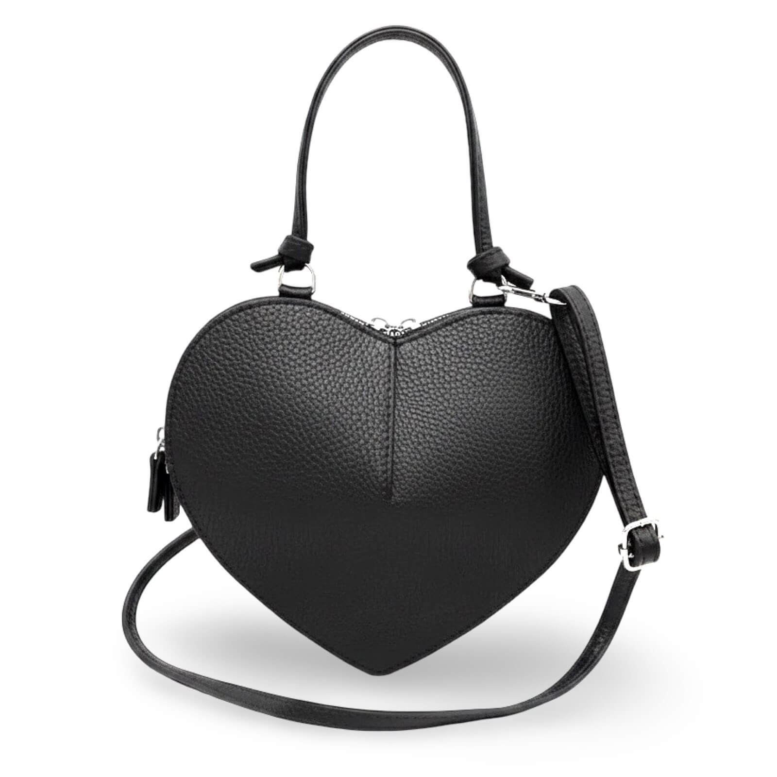 Kompakt, leicht und absolut vielseitig aus hochwertigen Leder - unsere schwarze Herzförmige Tasche vereint stilvolle Eleganz mit coolem Chic. Mit dem abnehmbaren, verstellbaren Leder-Gurt trägt man die Tasche bequem crossbody oder lässig in der Hand - perfekt für dein Dirndloutfit, Festivals oder am Abend zum Kleinen Schwarzen Kleid.