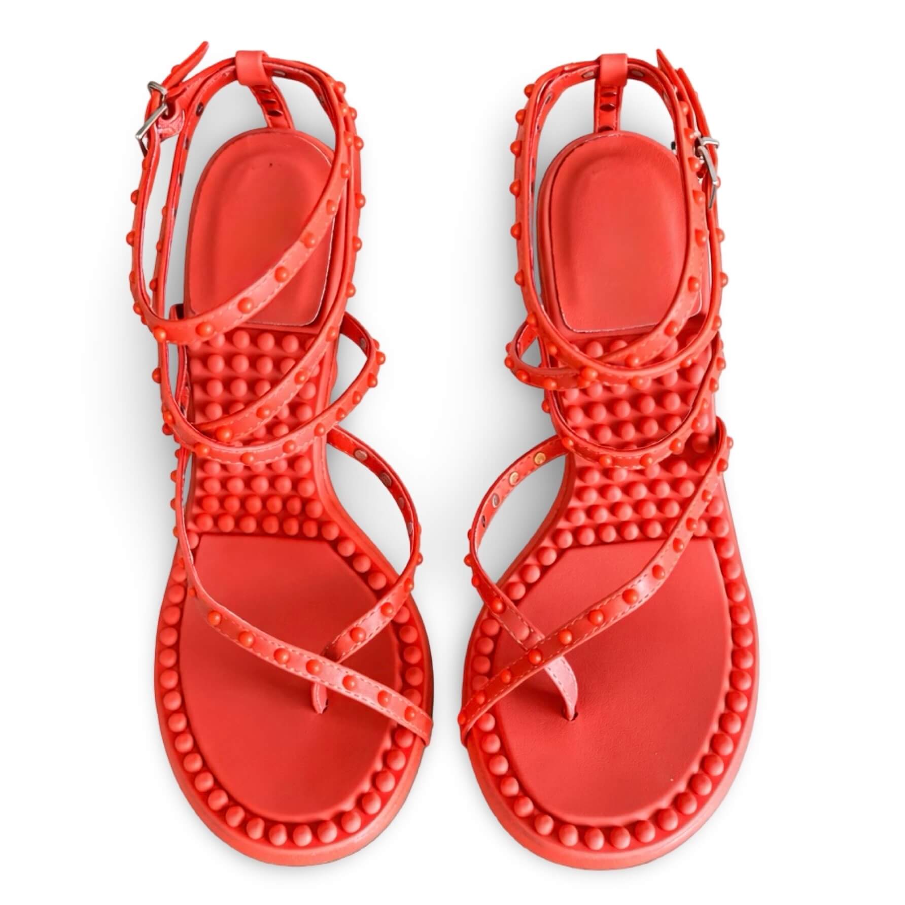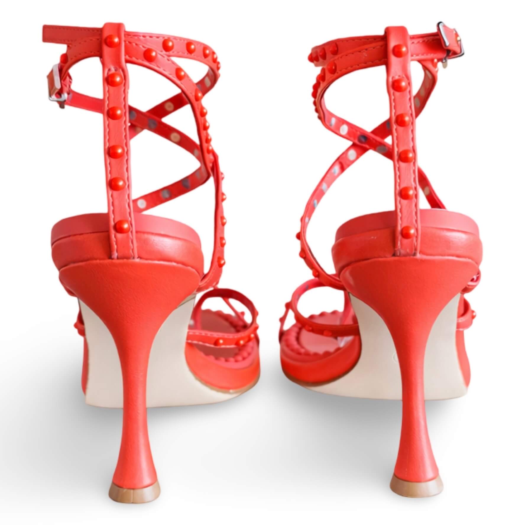 Setze ein Fashion Statement mit diesen auffälligen High Heel Riemensandalen in der Farbe Koralle. Die stilvollen Sandalen vereinen modernes Design mit femininer Eleganz und sind der perfekte Begleiter für Sommerabende, Events oder besondere Anlässe. Dank des stabilen Absatzes bietet die Sandale eine perfekte Kombination aus Eleganz und Komfort.
